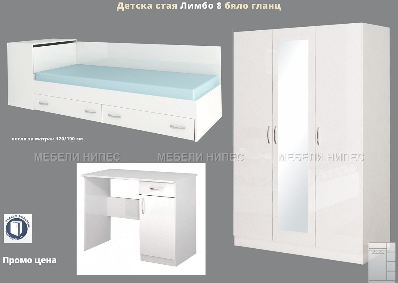 • Детска стая с приста Лимбо 8 бяло гланц – промо цена Улица Отец Паисий 15. Варна 9000