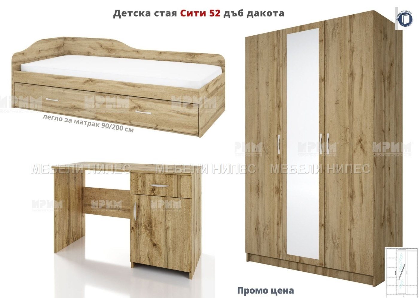 • Детска стая Сити 52 дъб дакота за матрак 90/200 см – ДО ИЗЧЕРПВАНЕ info@mebelinipes.com