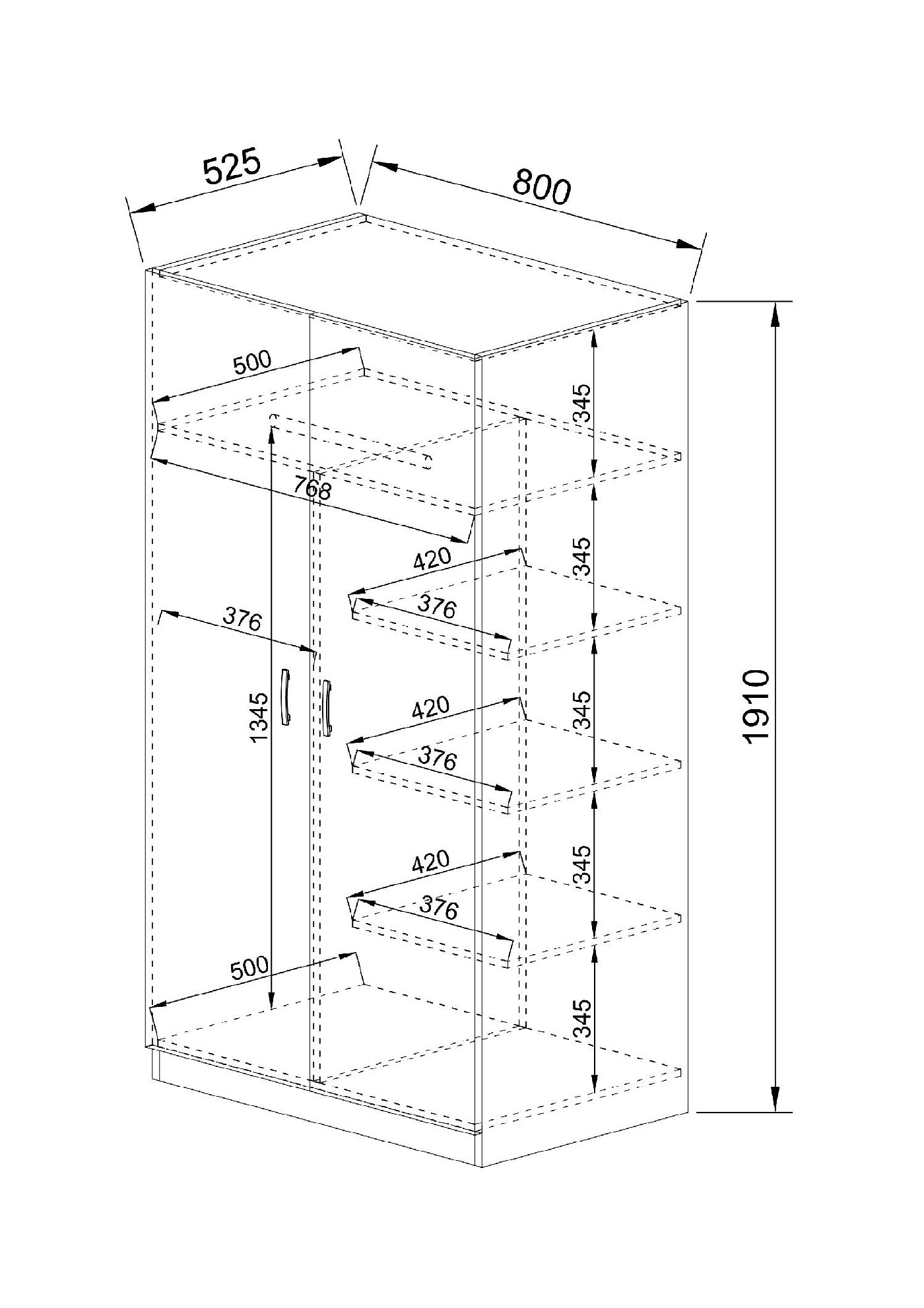 широчина 80 см, дълбочина 52,50 см, височина 191 см