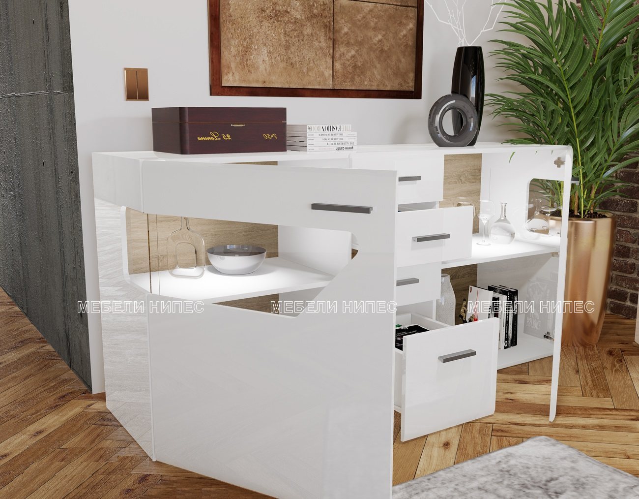 Цветове: МДФ бял гланц / дъб дакота