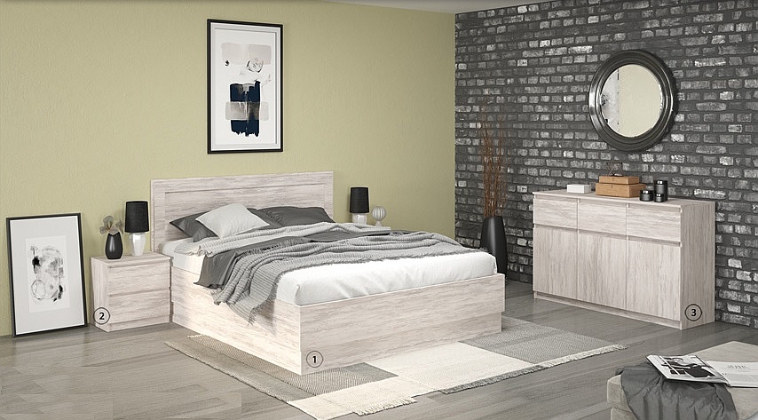 Спален комплект Лео 201 дъб бланко включва: