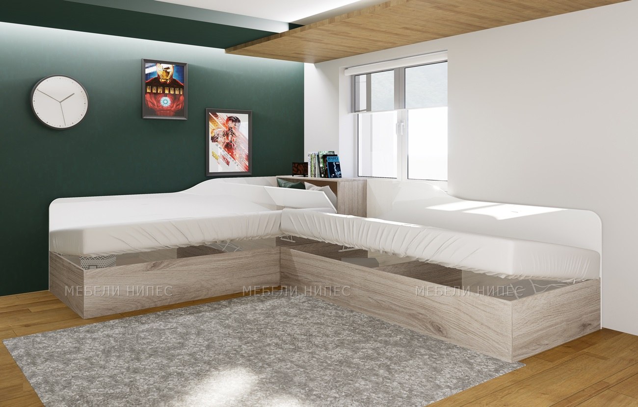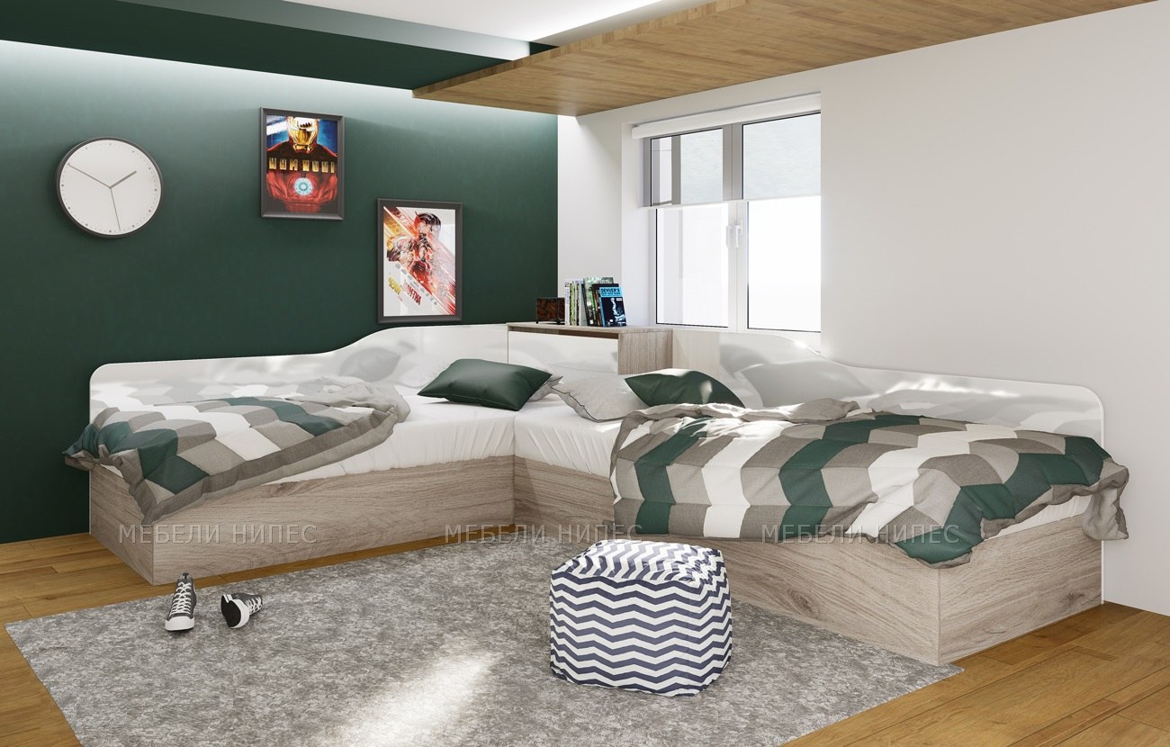• Комплект с високи ъглови легла (90/200) Сити 2043 с бяло гланц info@mebelinipes.com