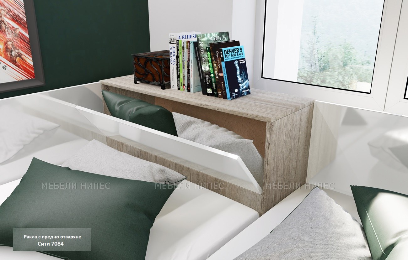 • Комплект с високи ъглови легла (90/200) Сити 2043 с бяло гланц Улица Отец Паисий 15. Варна 9000