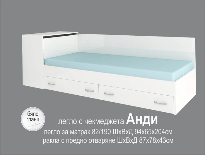 Легло с чекмеджета Анди бял гланц