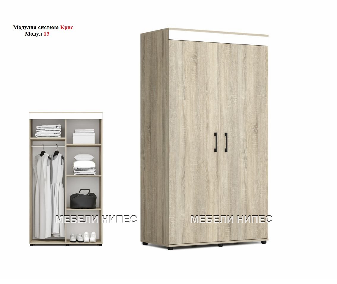 Модул 13 /двукрилен гардероб/ – ширина 100 см, дълбочина 50 см, височина 183 см – Цена: 319 лв