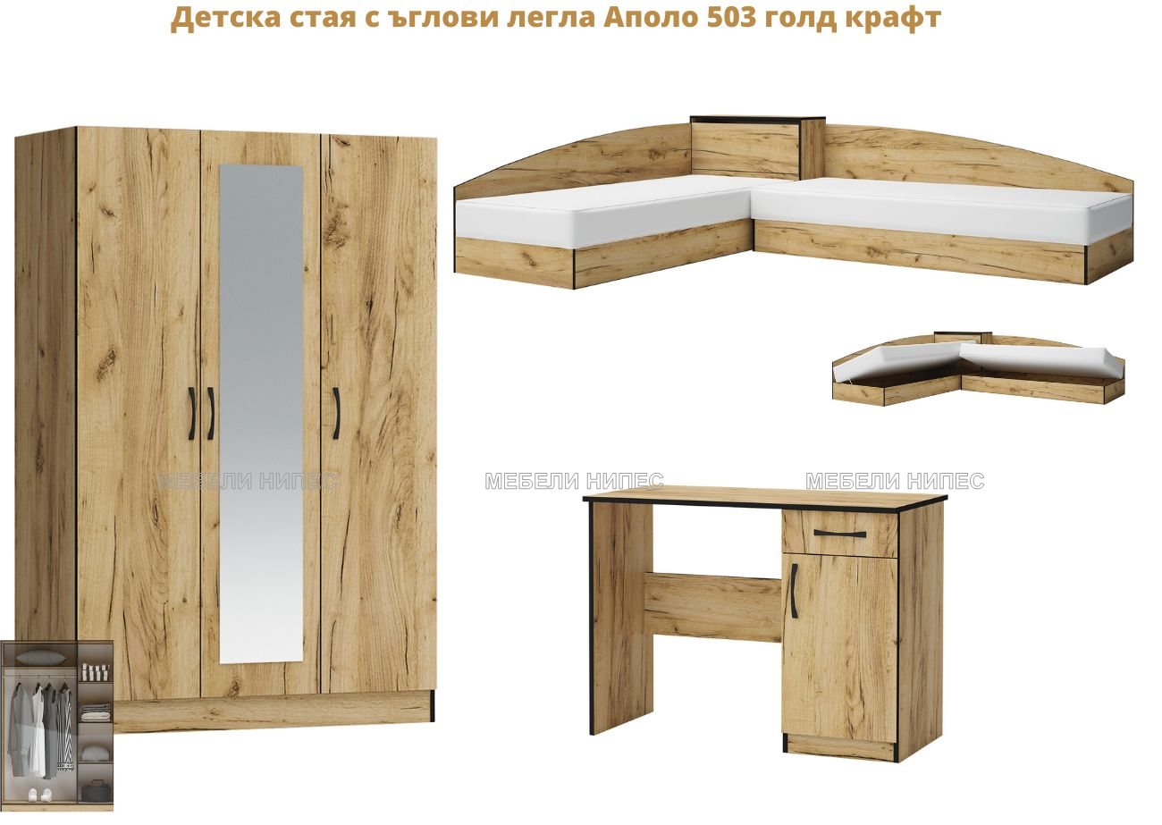 Комплект с ъглови легла Аполо 503 голд крафт включва: