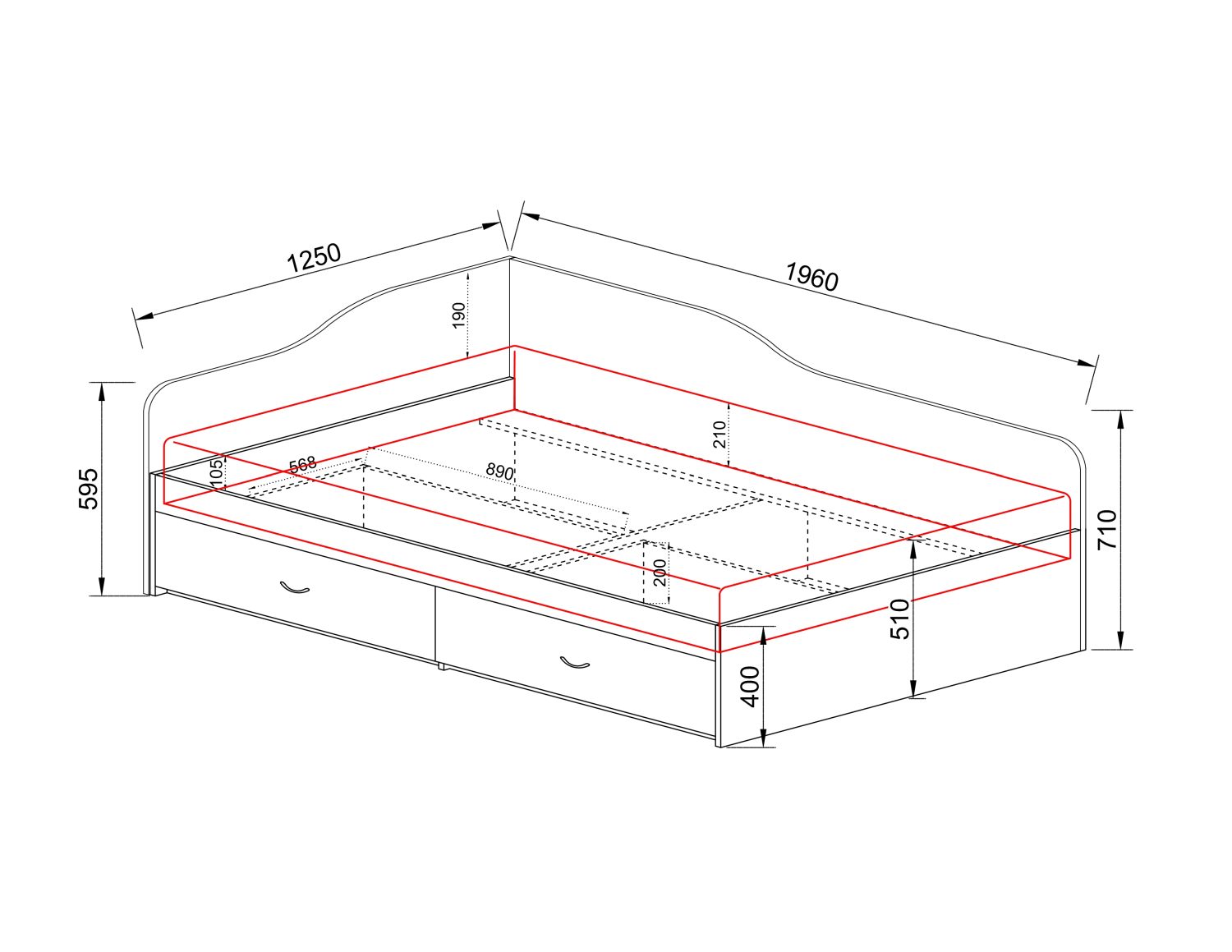 Габаритни размери: ширина 125 см, дължина 196 см, височина 71 см