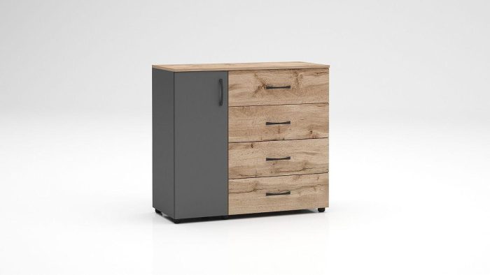 Скрин с 4 чекмеджета и една врата: дължина 100 см, дълбочина 43 см, височина 91 см