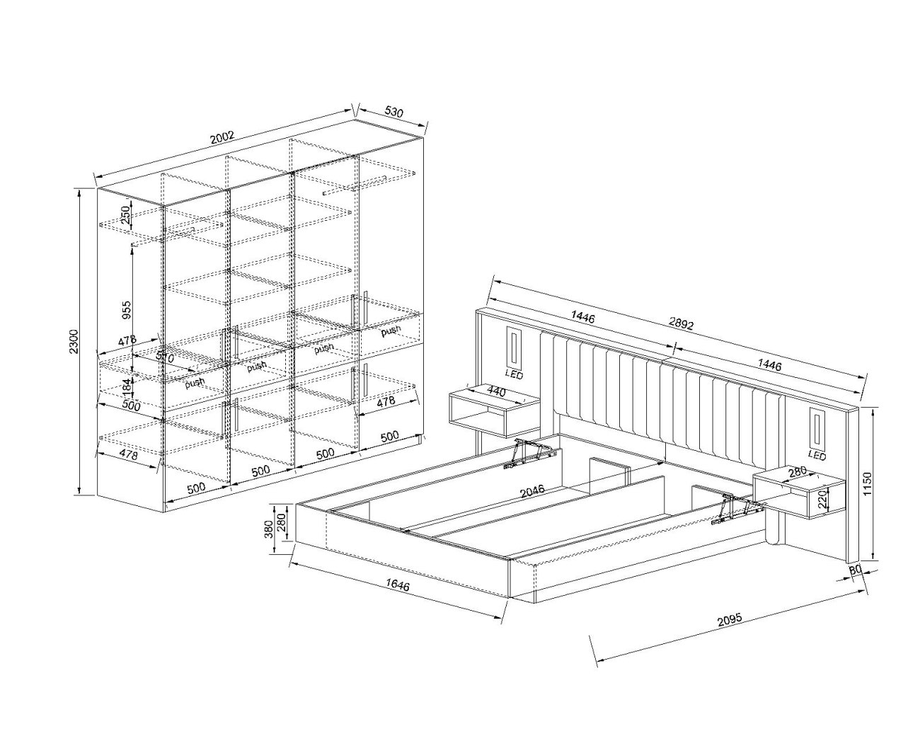 ширина 201 см, височина 231 см, дълбочина 53.50 см