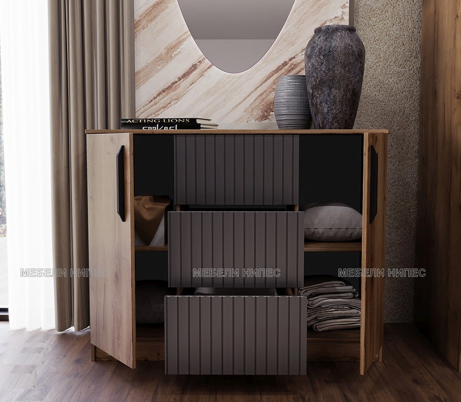 Цветове: дъб пиемона кафяв – графит – МДФ Карбон мат