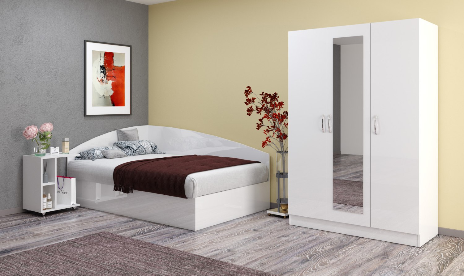 • Спален комплект с висока приста Лео 107 бяло гланц Улица Отец Паисий 15. Варна 9000