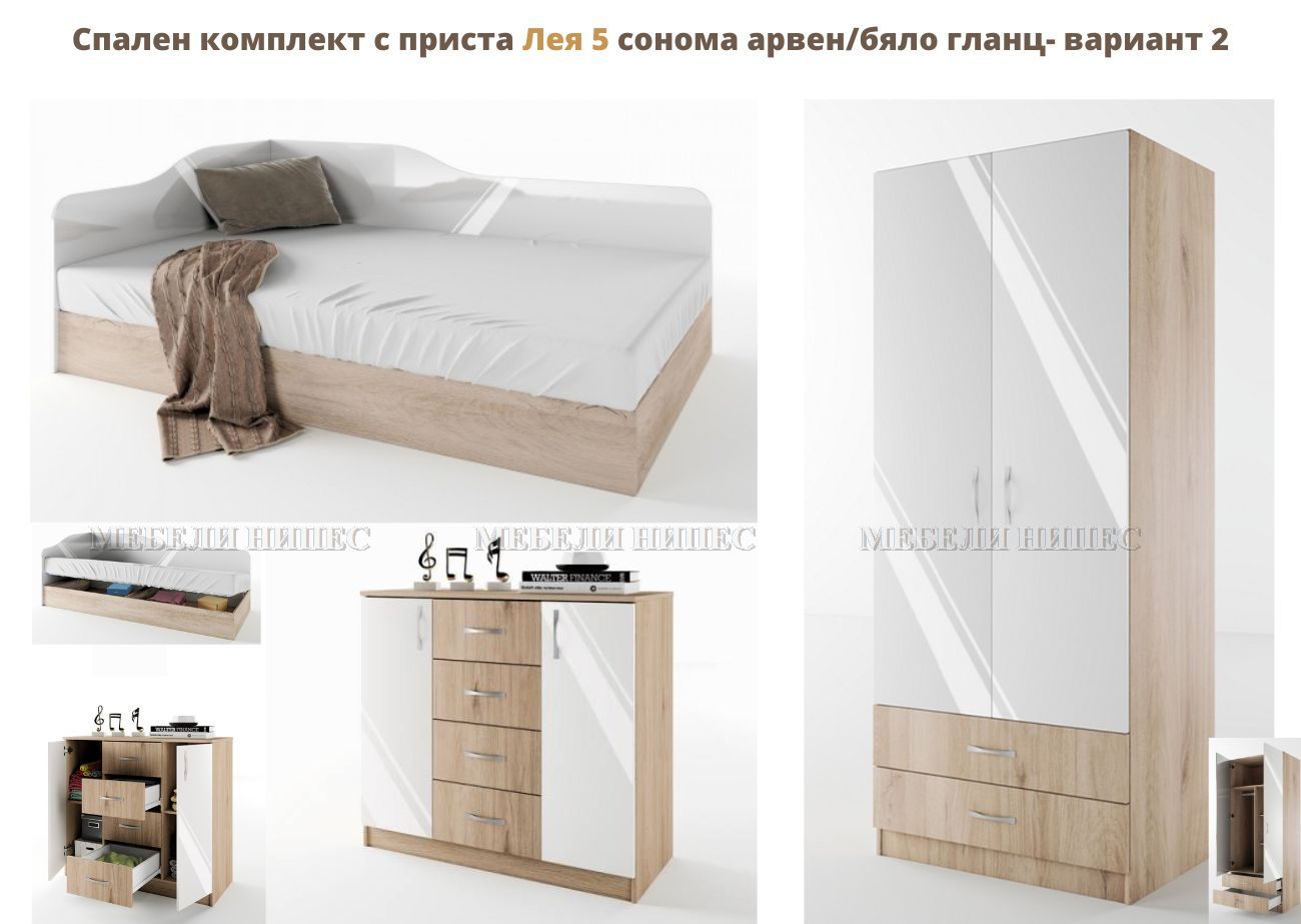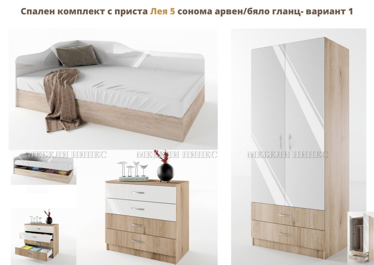 • Спалня с приста + скрин Лея 5 – 2 варианта info@mebelinipes.com