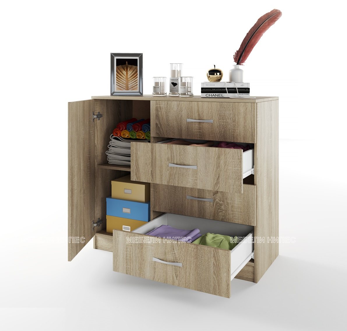 Скрин с 4 чекмеджета и врата: