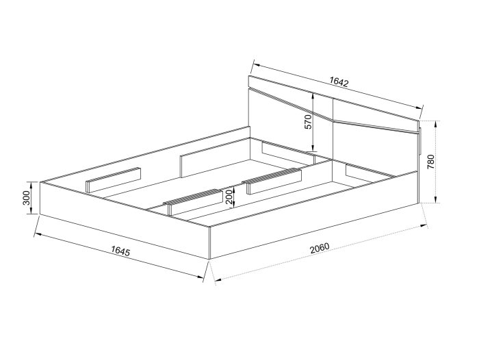 широчина – 164.50 см, височина – 78 см, дължина – 206 см