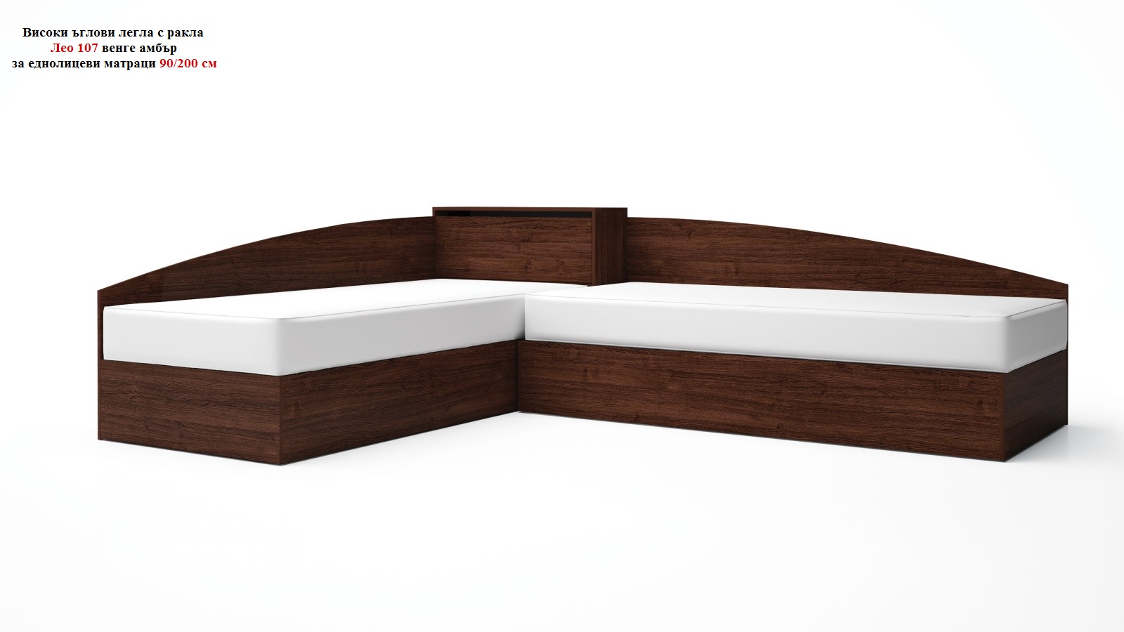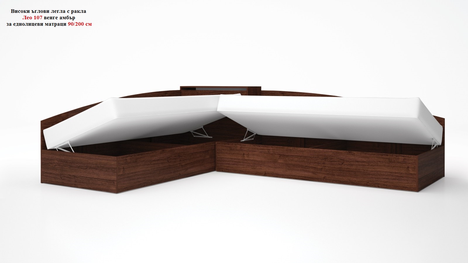 Комплект с високи ъглови легла и ракла Лео венге амбър включва: